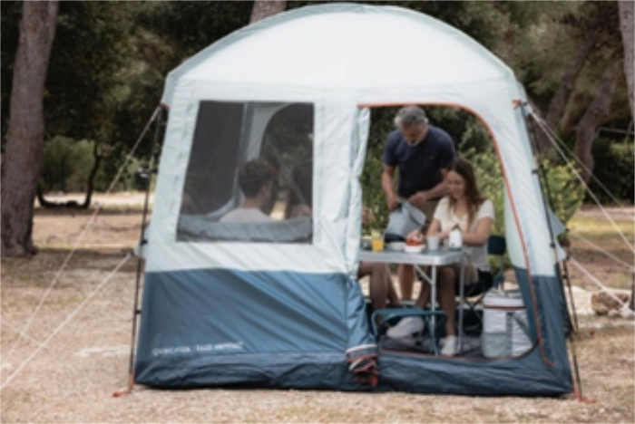 Your camping designers designed this Arpenaz Base living room for 6 campers looking to extend their sheltered area & protect themselves from bad weather, insects